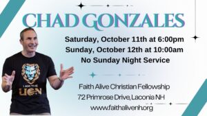 Two of the greatest emphases at Faith Alive are the importance of the written Word and the necessity of being led by the Spirit. Their heart is to see the lost saved, the sick healed, broken hearts restored and the discouraged empowered to victory. Their vision is to teach the uncompromising Word of God to the Lakes Region of New Hampshire and beyond.